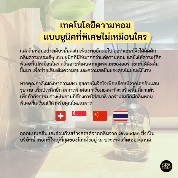 เทคโนโลยีของกลิ่นหอมที่ไม่เหมือนใคร ร่วมกันผลิตโดย Givaudan ประเทศสวิตเซอร์แลนด์"