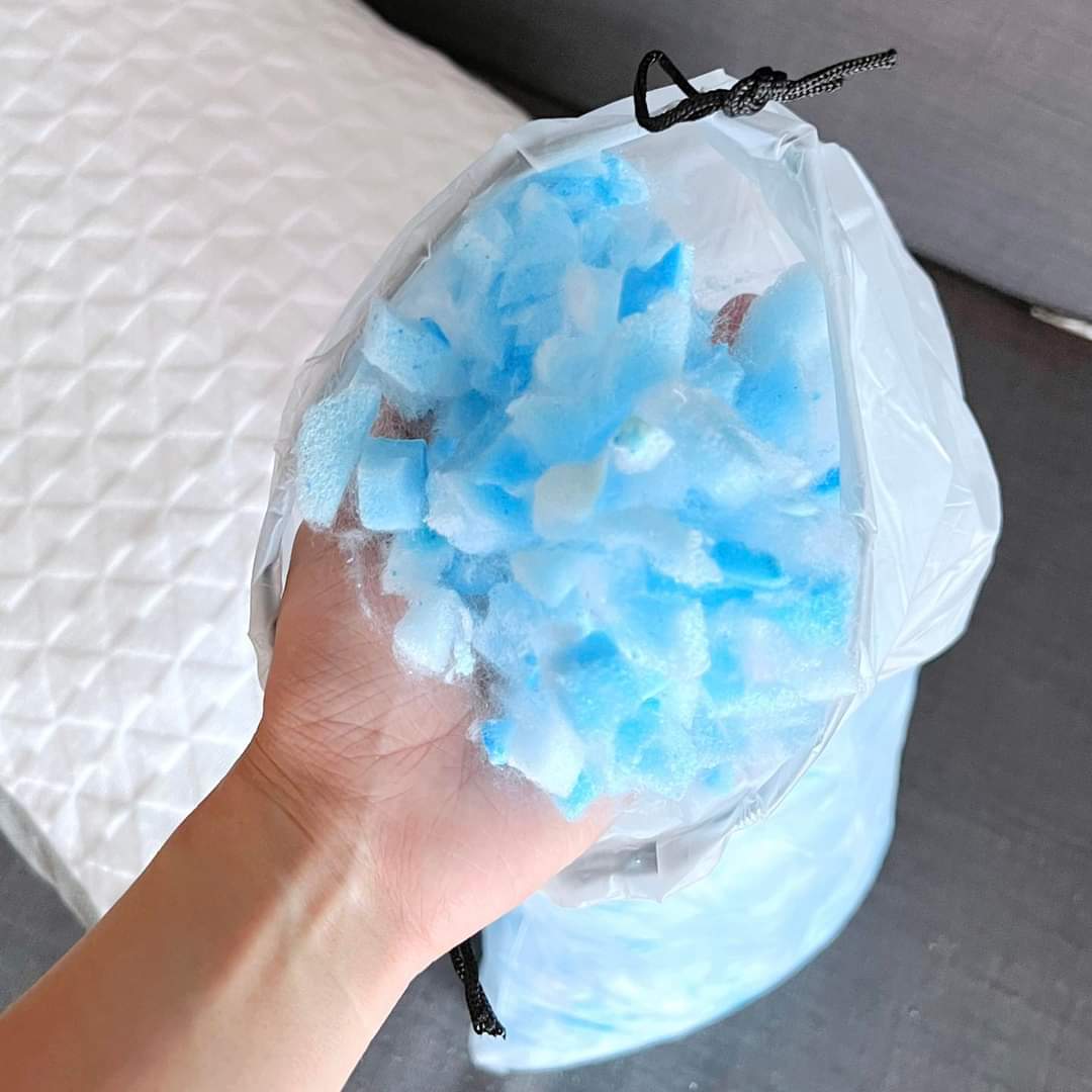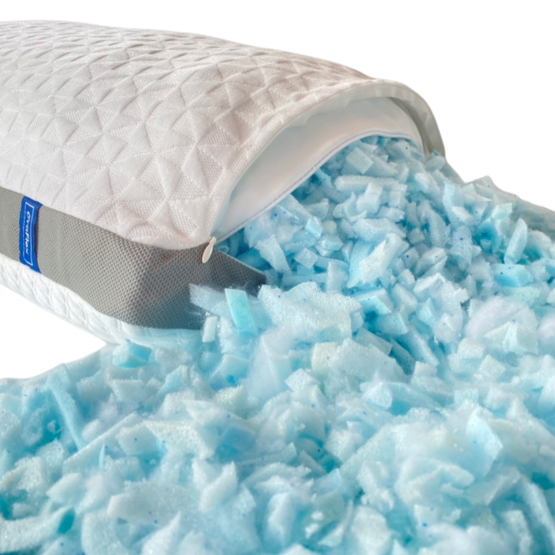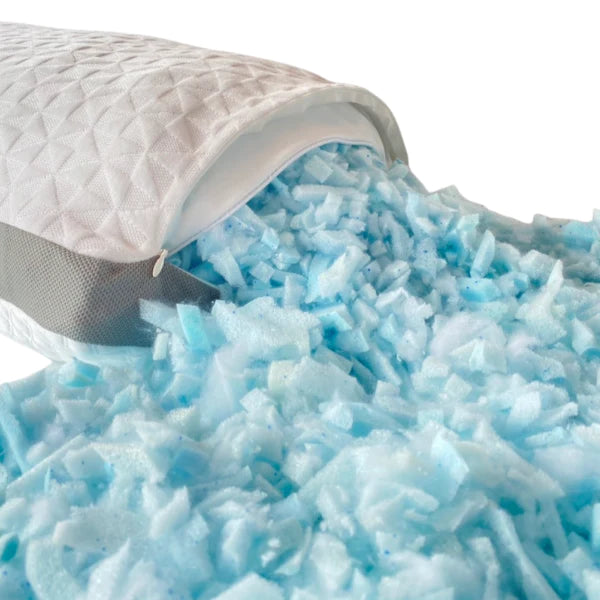 เมมโมรีโฟมแบบปั่นของเราคือ Cool Blue-Gel ที่ผสมเจลเย็นสีฟ้า เพื่อช่วยลดอุณหภูมิในหมอน และเพื่อเพิ่มความสบายเป็นพิเศษ