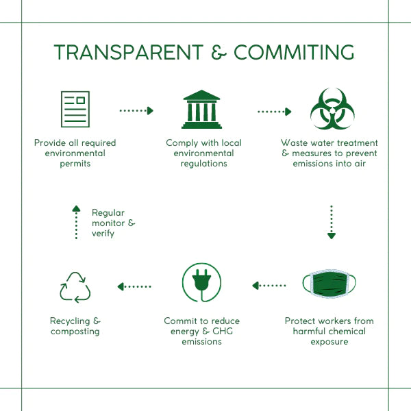 เมื่อของเสียจากการผลิตไม่ได้รับการจัดการอย่างมีความรับผิดชอบ สารเคมีเหล่านี้สามารถก่อให้เกิดมลพิษต่อน้ำ อากาศและดินทำลายสุขภาพของผู้คนและทำลายระบบนิเวศในท้องถิ่นนั้นๆ