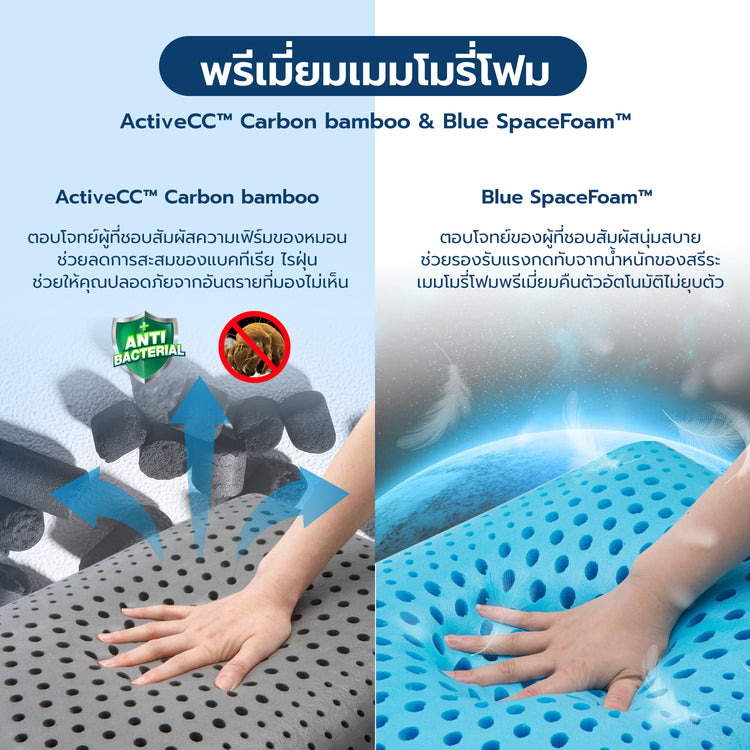 - นอนได้ทั้งด้านนุ่มและด้านเฟิร์ม เลือกนอนแบบไหนก็ได้ในใบเดียว