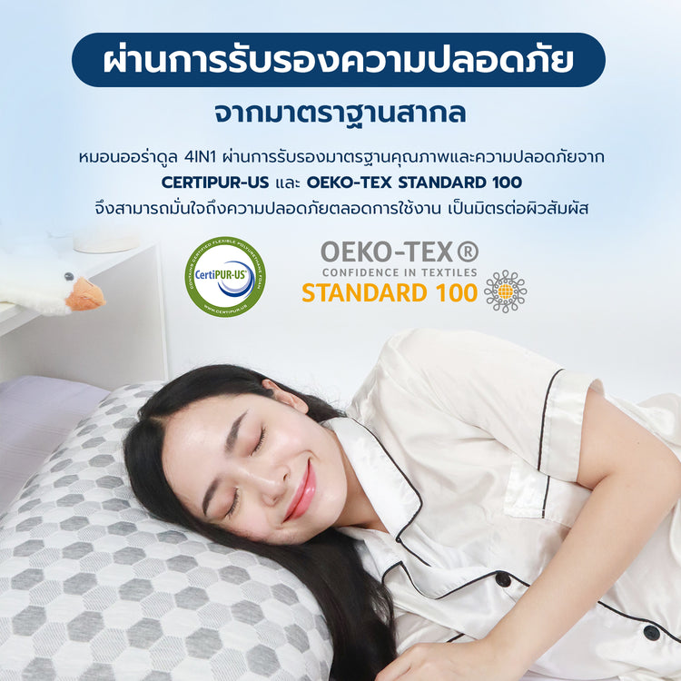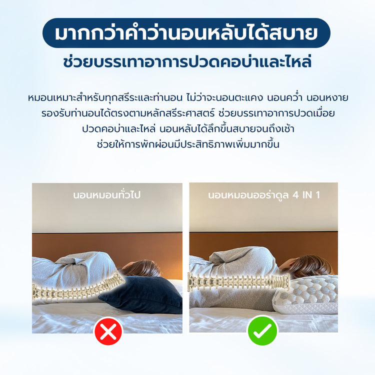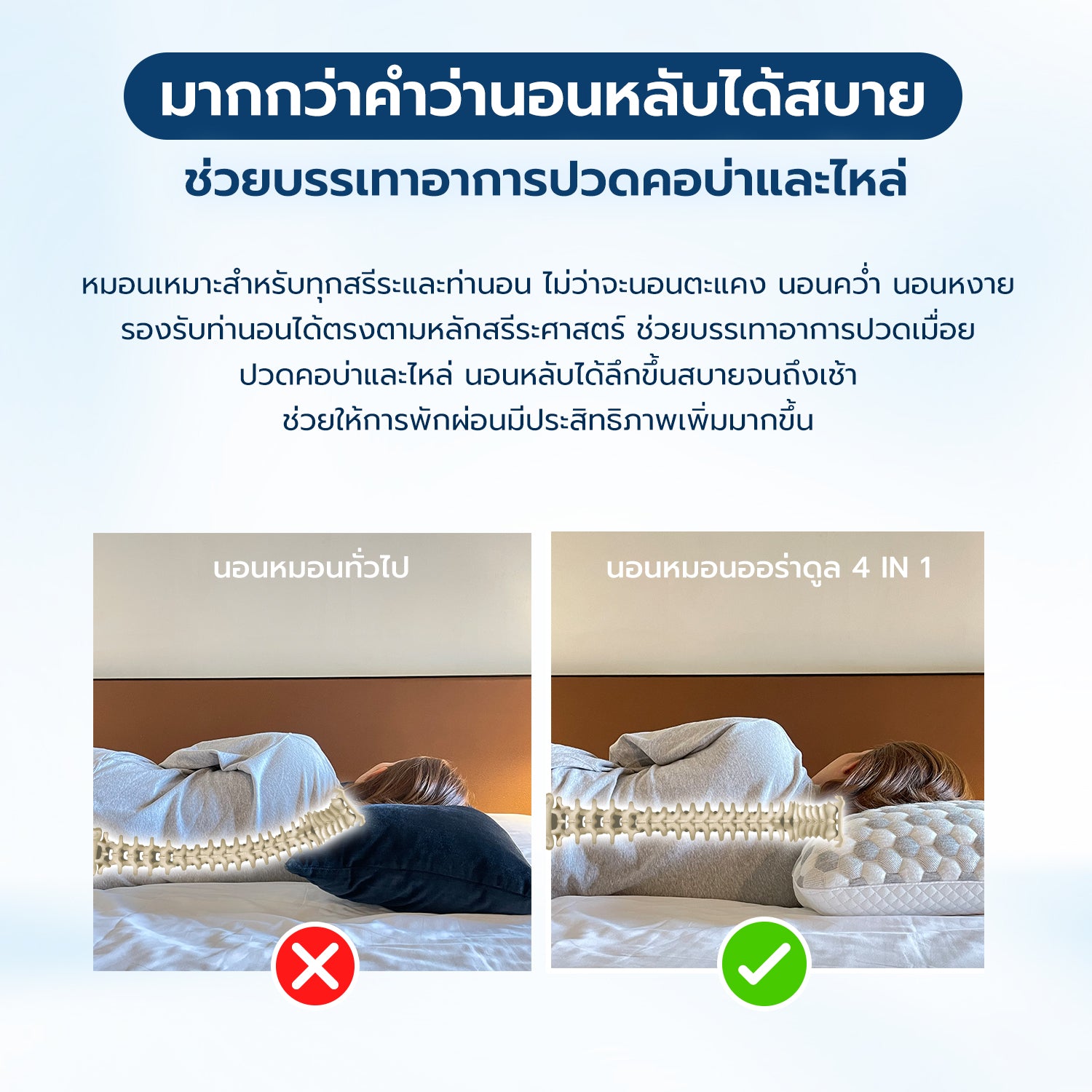 “นอนเย็น นอนสบาย นอนได้ถึง 4 สัมผัส ต้องจัดหมอนออร่าดูล”